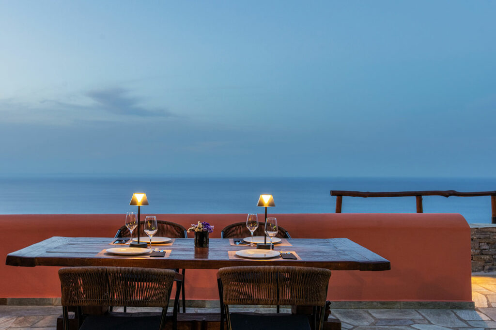 Απολαύστε ένα υπέροχο δείπνο στην εξωτερική βεράντα του 1701 ατενίζοντας το φεγγάρι που ανατέλλει ακριβώς απέναντι μέσα από τη θάλασσα και δίπλα από το νησί της Λήμνου.